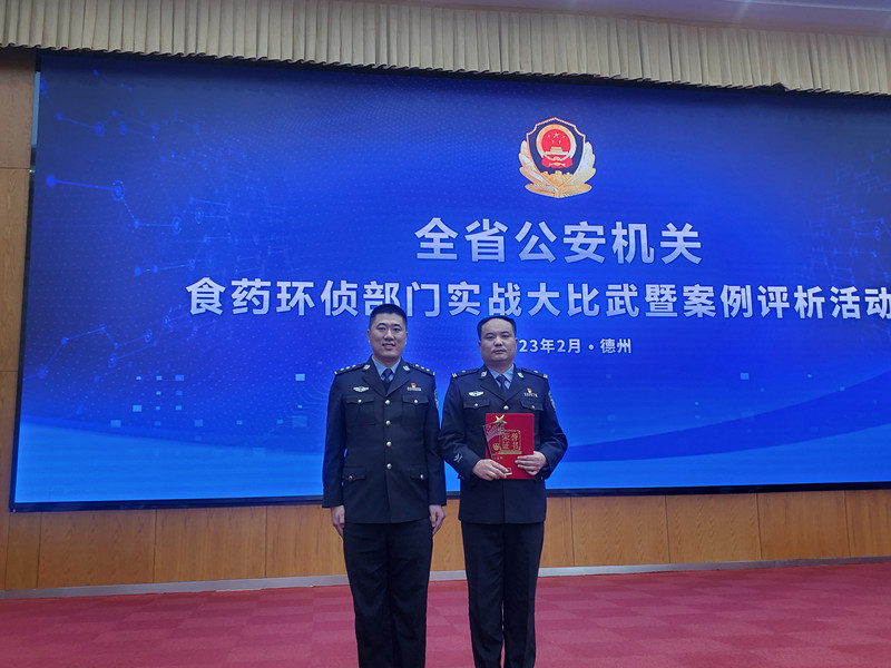 2月15日,山東省公安廳舉辦的2022年全省公安機(jī)關(guān)食藥環(huán)偵部門(mén)實(shí)戰(zhàn)大比武暨案例評(píng)析活動(dòng)中,棗莊高新區(qū)公安分局張范派出所三級(jí)警長(zhǎng)孫寶以分局破獲的“1.28銷(xiāo)售有毒有害食品案”作為精品案件,代表?xiàng)椙f市公安局參加了此次食藥環(huán)領(lǐng)域案例比武活動(dòng),經(jīng)過(guò)激烈角逐,在全省22名參賽選手中脫穎而出,榮獲一等獎(jiǎng)!